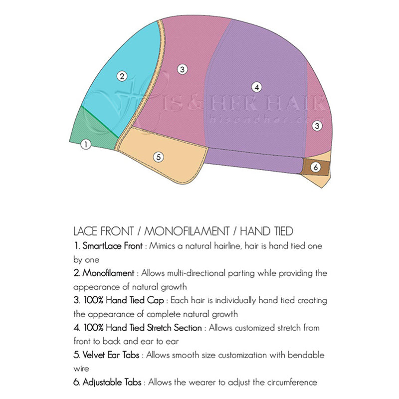 | Cap Construction | Lace Front / Single Monofilament / Handtied |